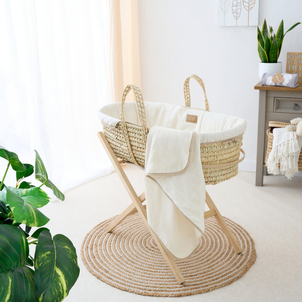 A Moses basket is often made from materials like wicker or palm leaf, and are as beautiful as they are practical. Imagine a timeless, portable sleeping space that's got your baby's comfort at its heart. They come in various colours and styles to match your decor, saving space in your room, and bringing an air of charm.
