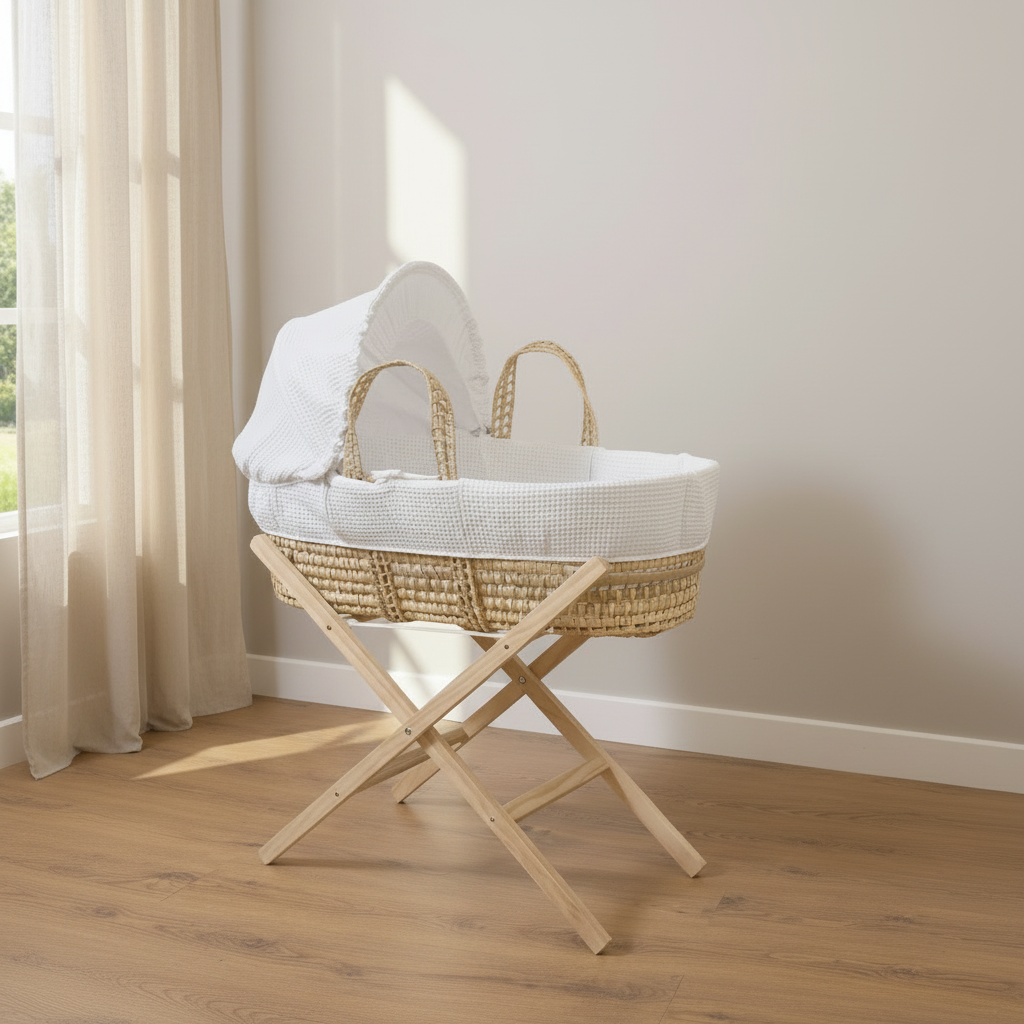 Create a cosy, breathable first sleep space for your newborn with the Clair de Lune Waffle Palm Moses Basket with Stand & Bedding Bundle. Beautifully handcrafted and thoughtfully bundled, this traditional Moses basket set includes everything you need from day one—offering exceptional value while keeping your baby safe, snug, and supported.