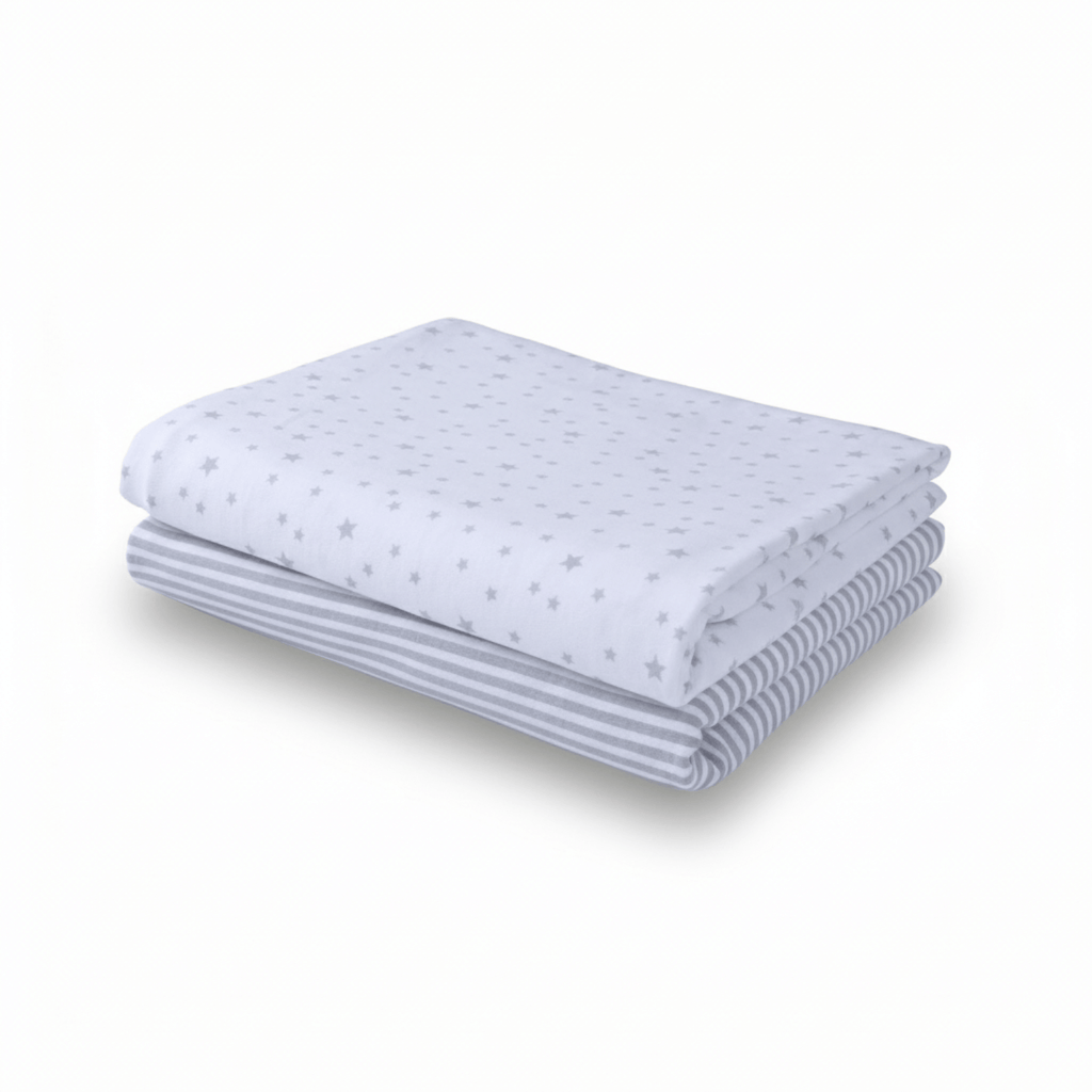 This 2-pack of fitted pram/crib sheets is a practical and stylish choice for parents who value quality, safety, and convenience.