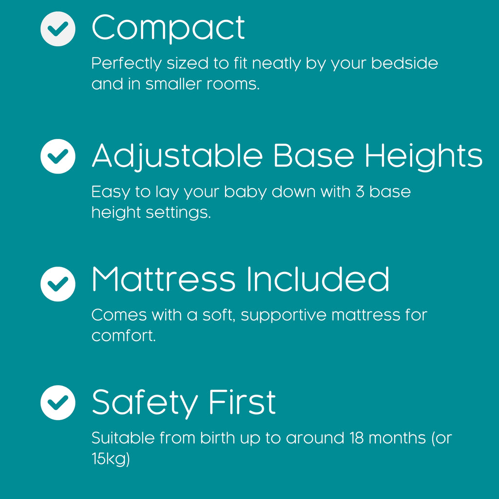 Compact and Thoughtful Design - With its space-saving footprint, this cot maximises your room without compromising on comfort or safety.