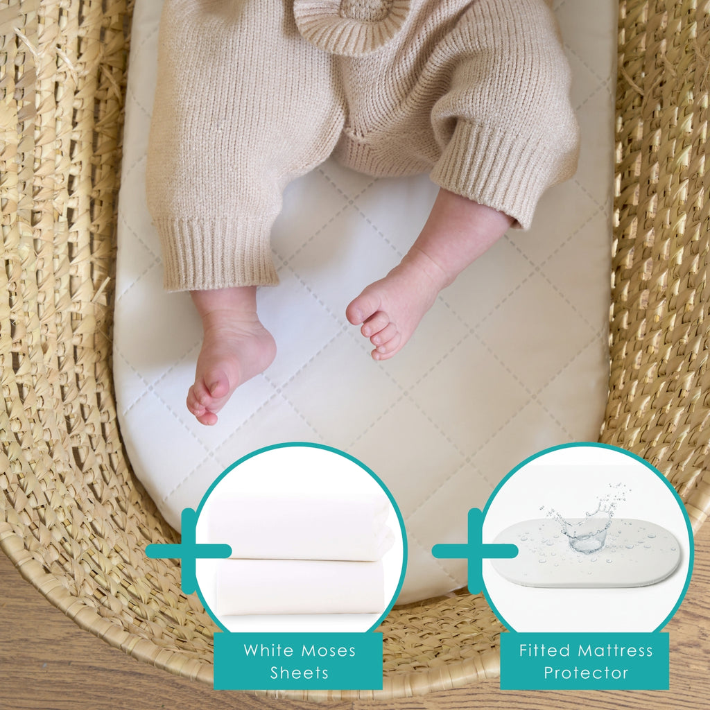 Give your baby the best start with our Quilted Moses Basket Mattress, designed for ultimate comfort, breathability, and support. Crafted to fit Clair de Lune Palm Moses Baskets and Noah Pods®, this luxurious mattress provides a safe, soothing sleep surface for your newborn while being kind to their skin and the planet.