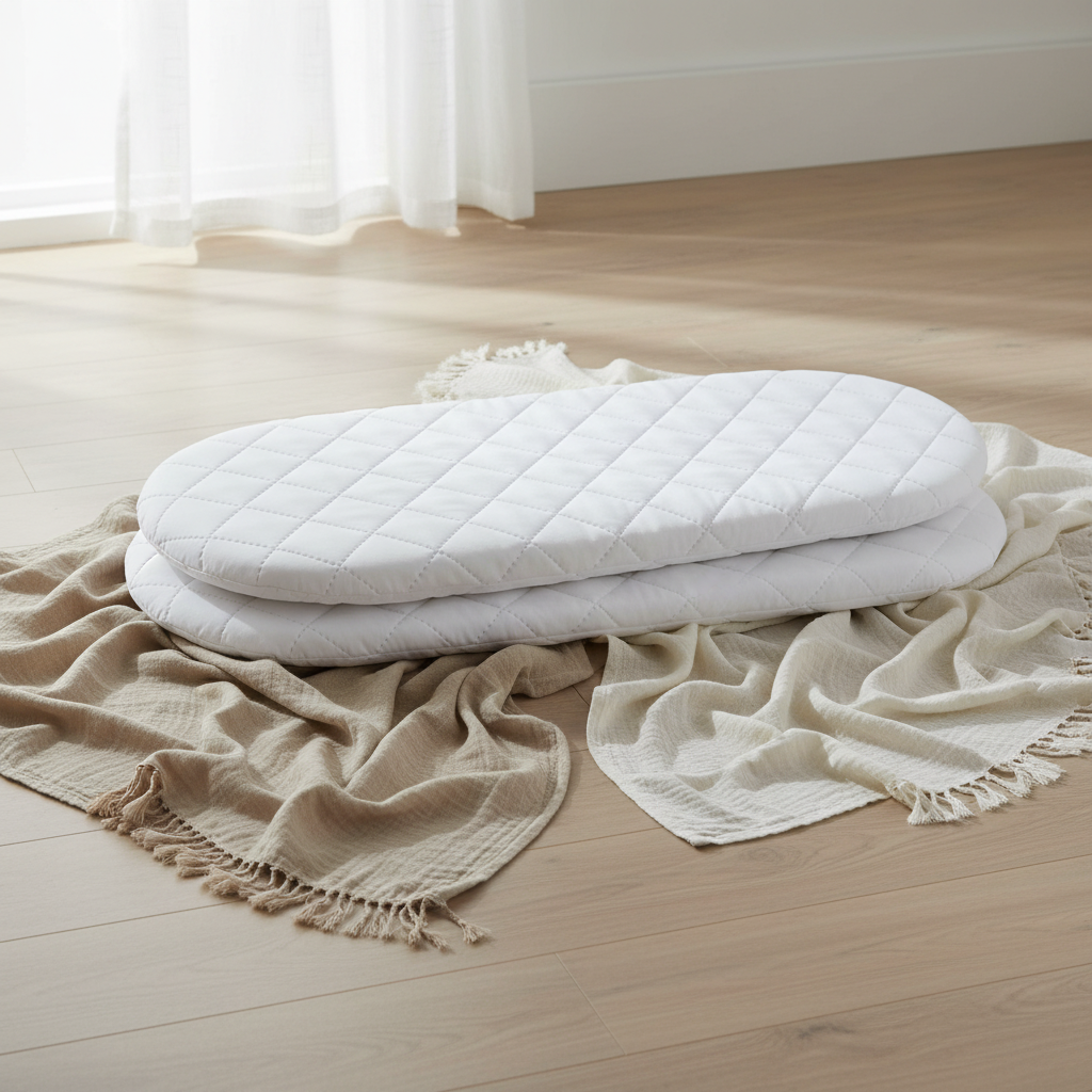 Beautifully made in Great Britain, this Quilted Moses Basket Mattress combines comfort, safety, and sustainability - helping your newborn sleep soundly, night after night.