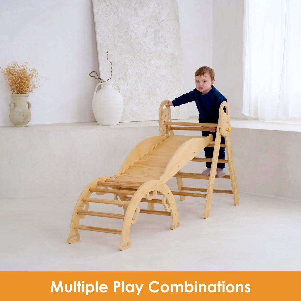 Double-Sided Ramp: The reversible ramp features a smooth side for sliding and a climbing side for a gentle challenge. Adjust the height easily by connecting it to the triangle or arch, tailoring play to your child’s confidence and ability.