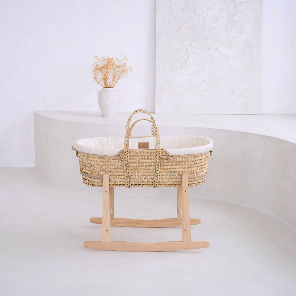 Organic Palm Moses Basket With Stand and Bedding Bundle