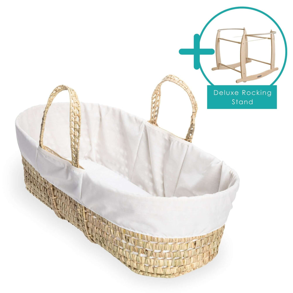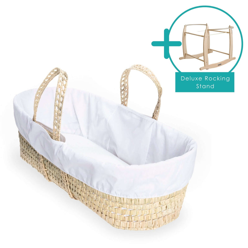 • Comes complete with handwoven palm Moses basket, Cotton-rich dressing and hypoallergenic fibre mattress.