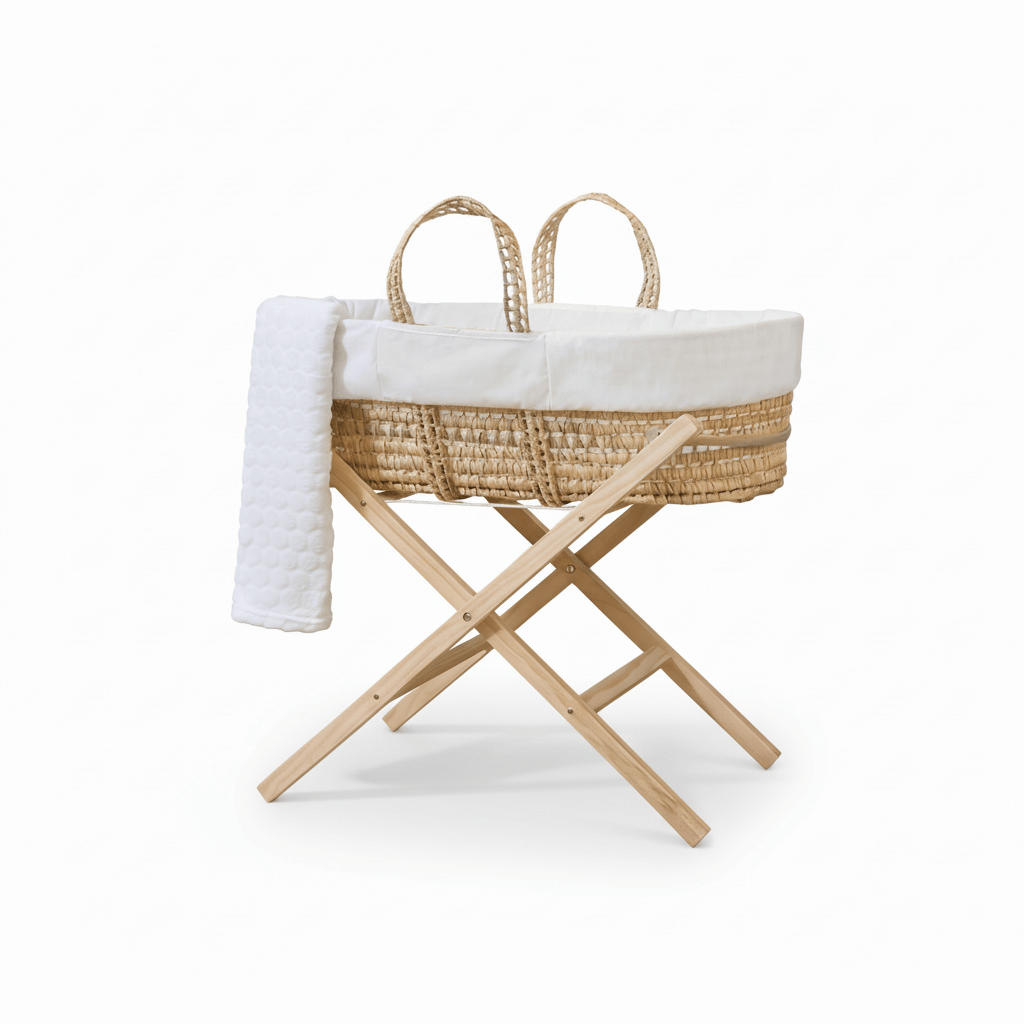 • Complete Moses Basket Bundle - Includes handwoven palm Moses basket, soft Scandi cotton dressing, hypoallergenic firm fibre mattress with washable cover, fitted white cotton sheet, plush Marshmallow blanket, and sturdy natural folding stand - all essentials combined for great value.